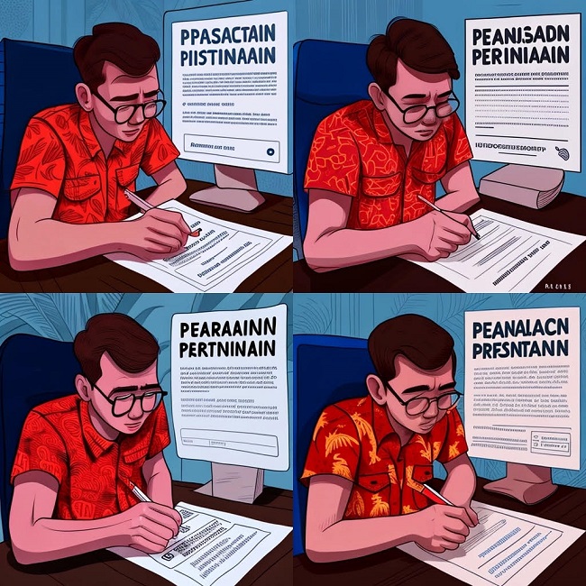 Four further AI visualisations of ‘the feeling of applying for an Indonesian research permit’. These capture the process from the Indonesian counterpart’s perspective/Nicholas J. Long, made with Midjourney